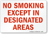 Smoking Prohibited Sign: No Smoking Except In Designated Areas (red text) S-9647