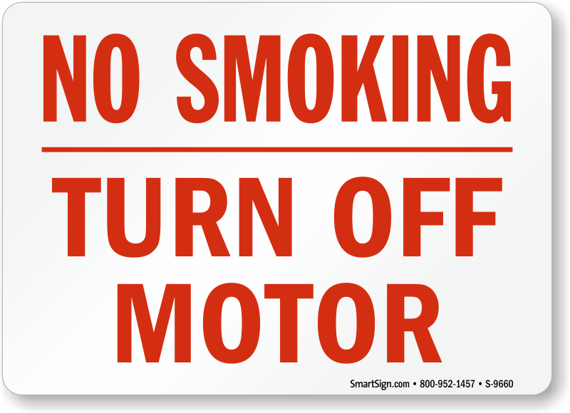 No Smoking Sign: Turn Off Motor (red text) S-9660
