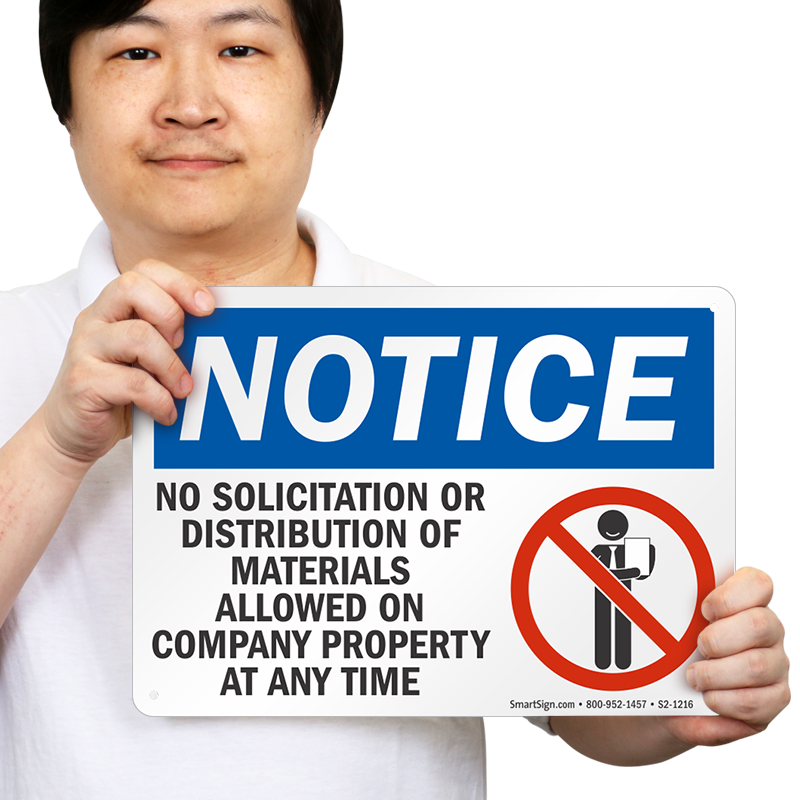 Need to get rid of solicitors? Use this OSHA Notice Sign and bring soliciting or unwanted interruptions to halt.