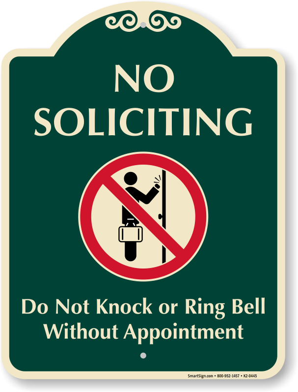 No Soliciting SignatureSign: Do not Knock Or Ring Bell Without Appointment K2-0445 Learn More...