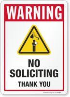Security Warning Sign: No Soliciting - Thank You S2-4040