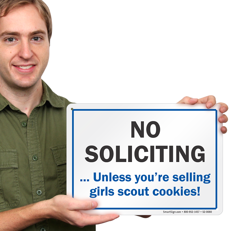 Allow a select group to knock on your door. Welcome Girls Scouts selling cookies, and keep all other solicitors at bay with this bold sign.