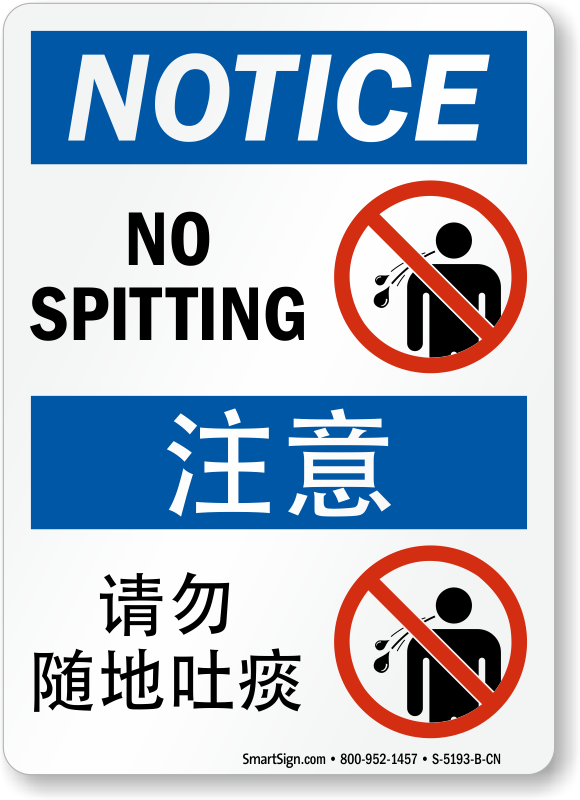 Maintaining cleanliness requires communicating workplace policies to workers in a language they easily understand. This Bilingual OSHA Notice sign with text in English and Chinese will ensure that workers do not spit.