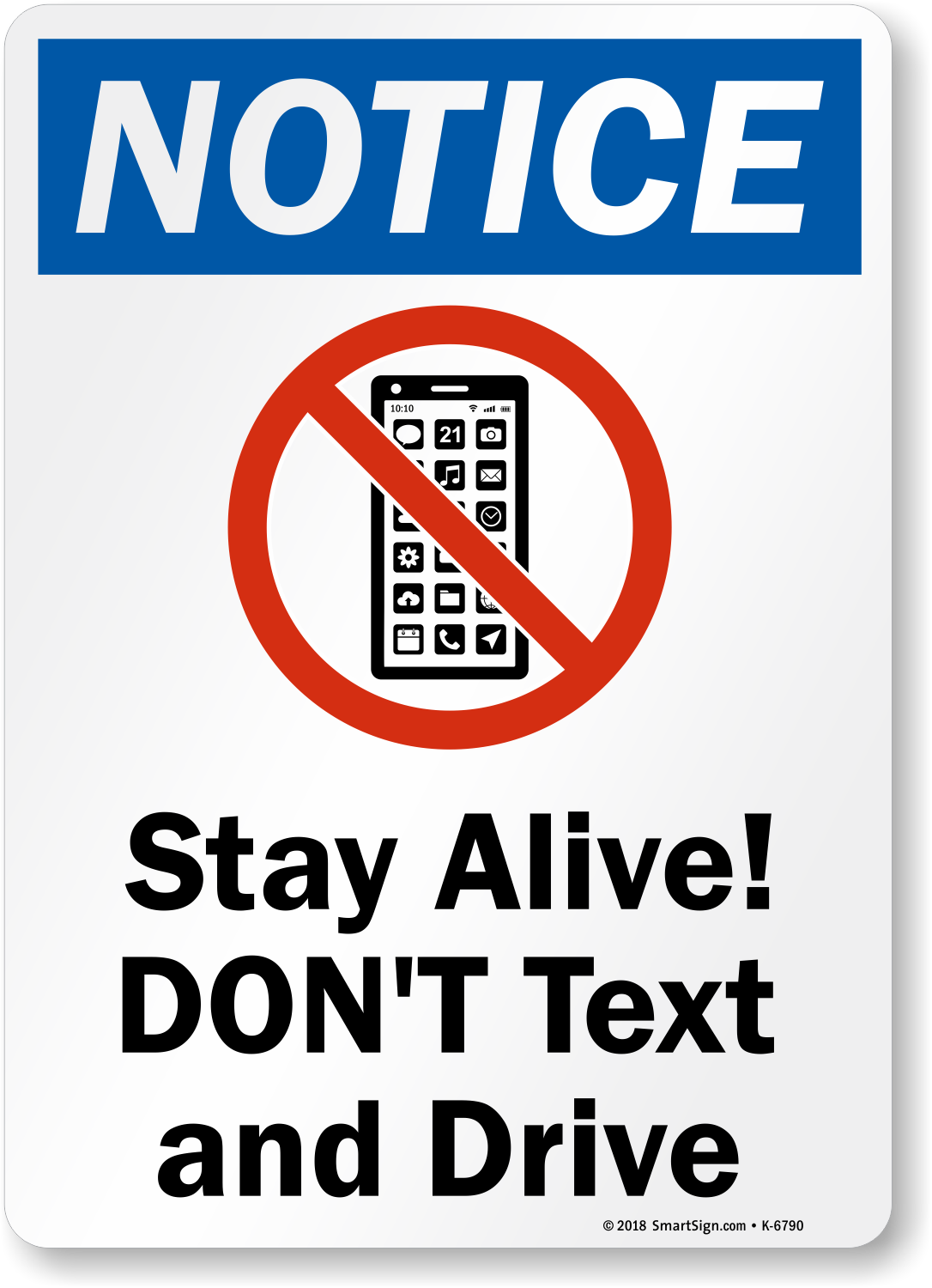 Cell phone Sign: Notice - Stay Alive Don't Text And Drive (with Graphic) K-6790