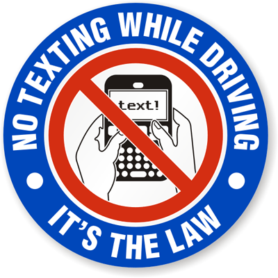 No Texting Label: No Texting, While Driving, It's The Law (with Graphic) LB-1550