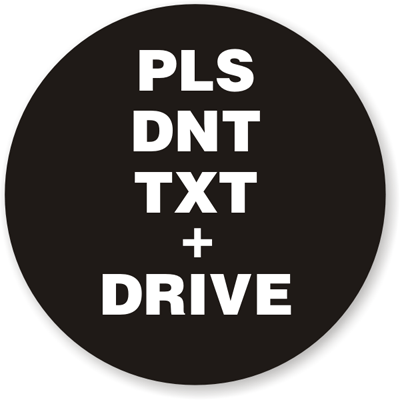 No text is short enough to take your eyes of the road. Remind drivers not to text and drive with this black and white sticker.