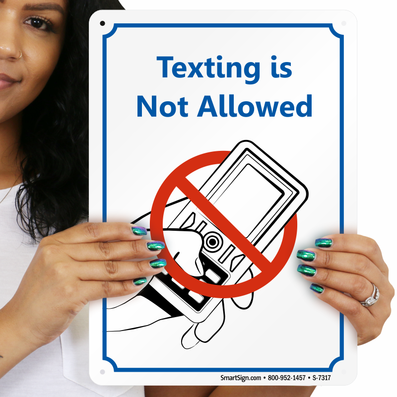 This graphic Texting is Not Allowed Sign will let everyone know in the classroom, workplace, security area or any other location that texting is not allowed. Texting can be rude, distracting and unsafe so make sure everyone knows when it is not allowed.