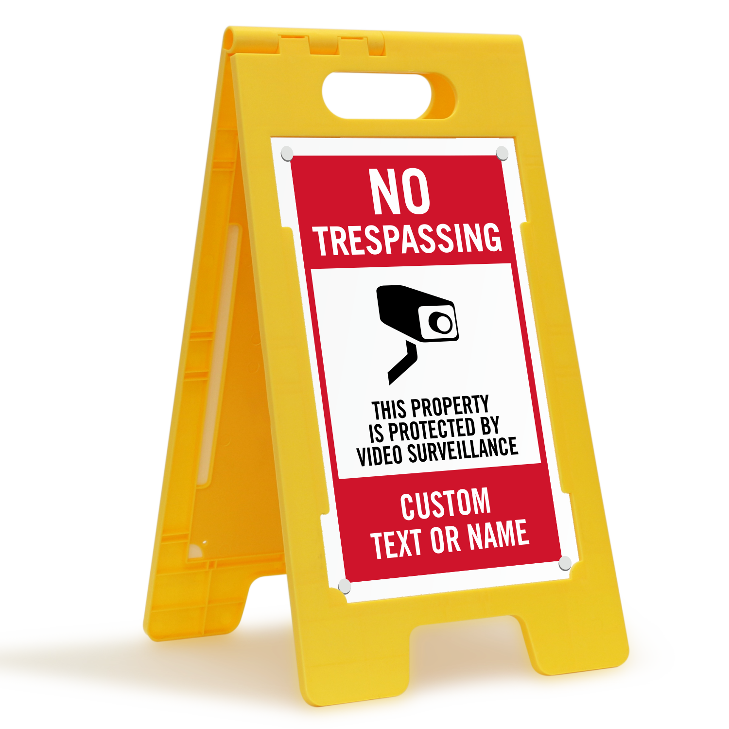 - Add a warning or any other important message with the camera graphic on this Standing Floor Sign and place the sign right outside your property to use as a barricade.