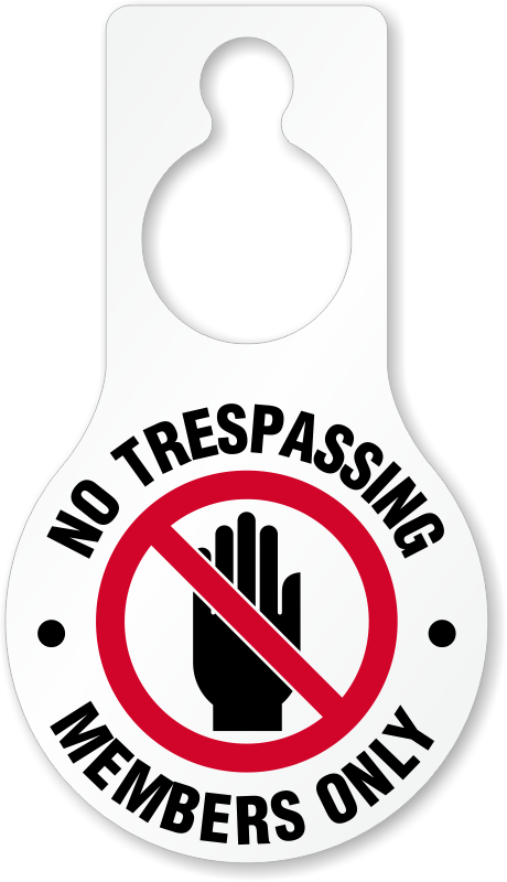 Pear Shaped Plastic Door Hang Tag: No Trespassing Members Only (with Stop Hand Symbol) TG-1426