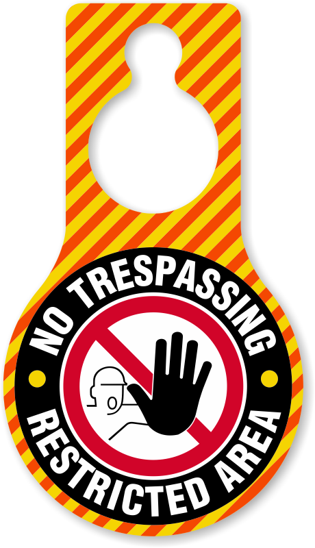 Pear Shaped Plastic Door Hang Tag: No Trespassing Restricted Area (with Graphic) TG-1425