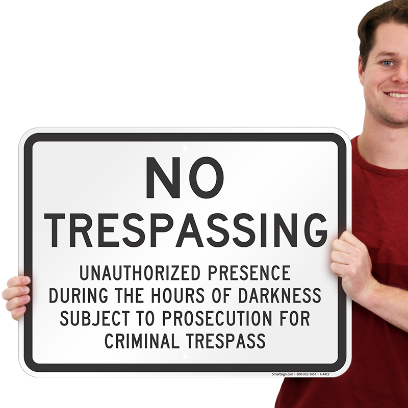 No Trespassing Sign: Unauthorized Presence During The Hours Of Darkness Subject To Prosecution For Criminal Trespass K-4412 Learn More...