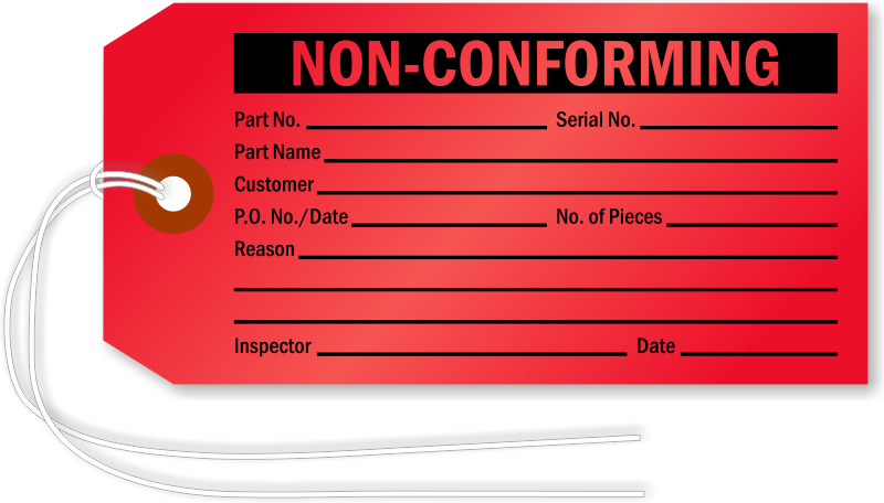 Our bold 'Non-Conforming' inspection tag informs workers about the part no., serial no., and other details of equipment, materials, or parts which do not meet the specified production and quality criteria.
