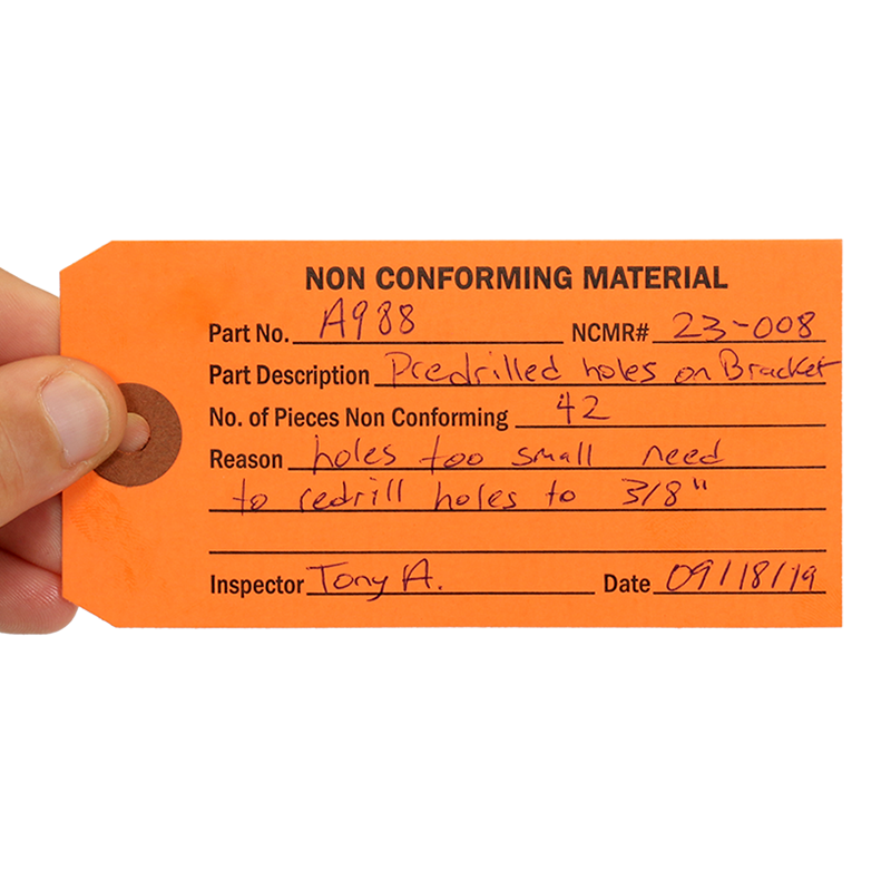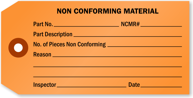 Use this Inspection Tag to record all details of the Non Conforming Material and mark components which do not meet the specified quality standards.