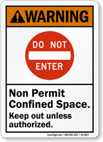 ANSI Warning Sign: Non Permit Confined Space, Keep Out Unless Authorized (Do Not Enter)