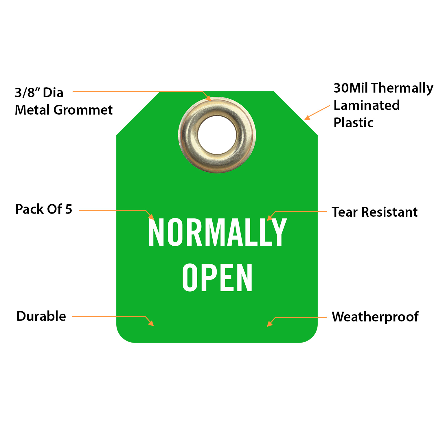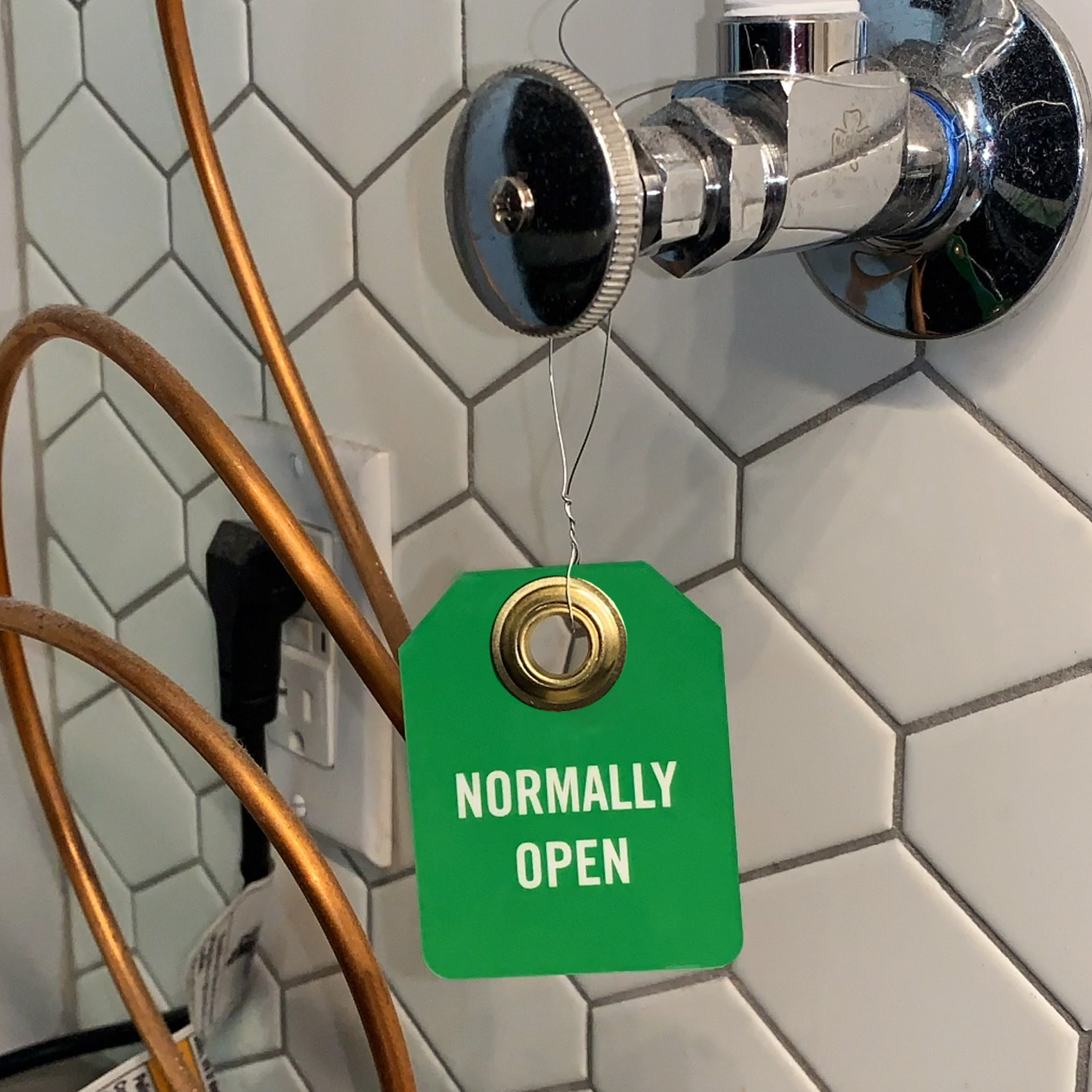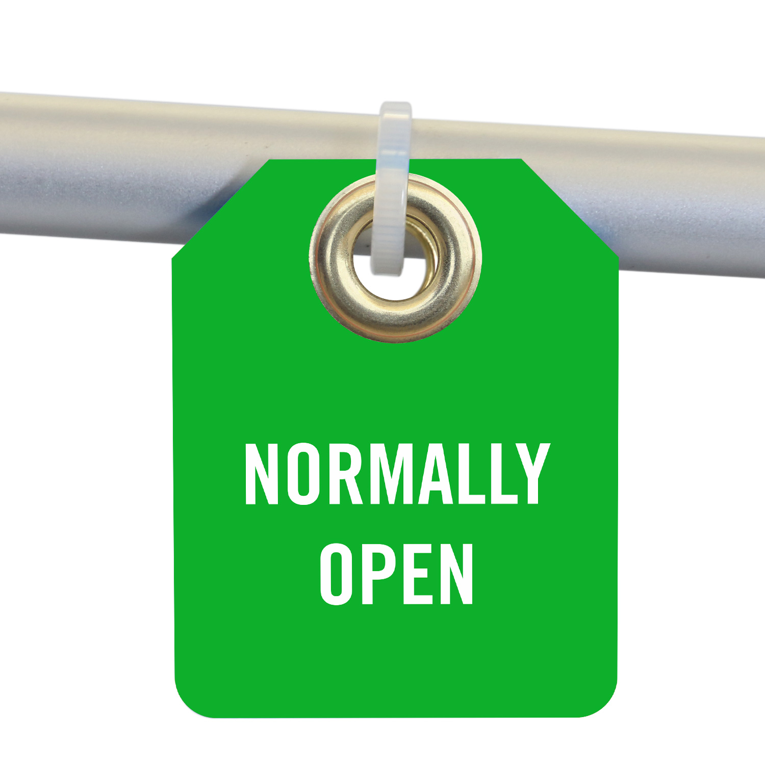Hang this Normally Open 2-sided Micro Tag to indicate the valve position and stop others from accidentally adjusting the valve.