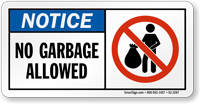 Recycling Sign: Notice - No Garbage Allowed S2-2287