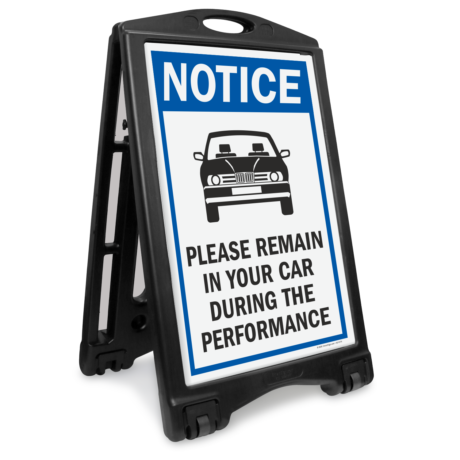 Portable Sign and Base: NOTICE: Please Remain in Your Car During the Performance
