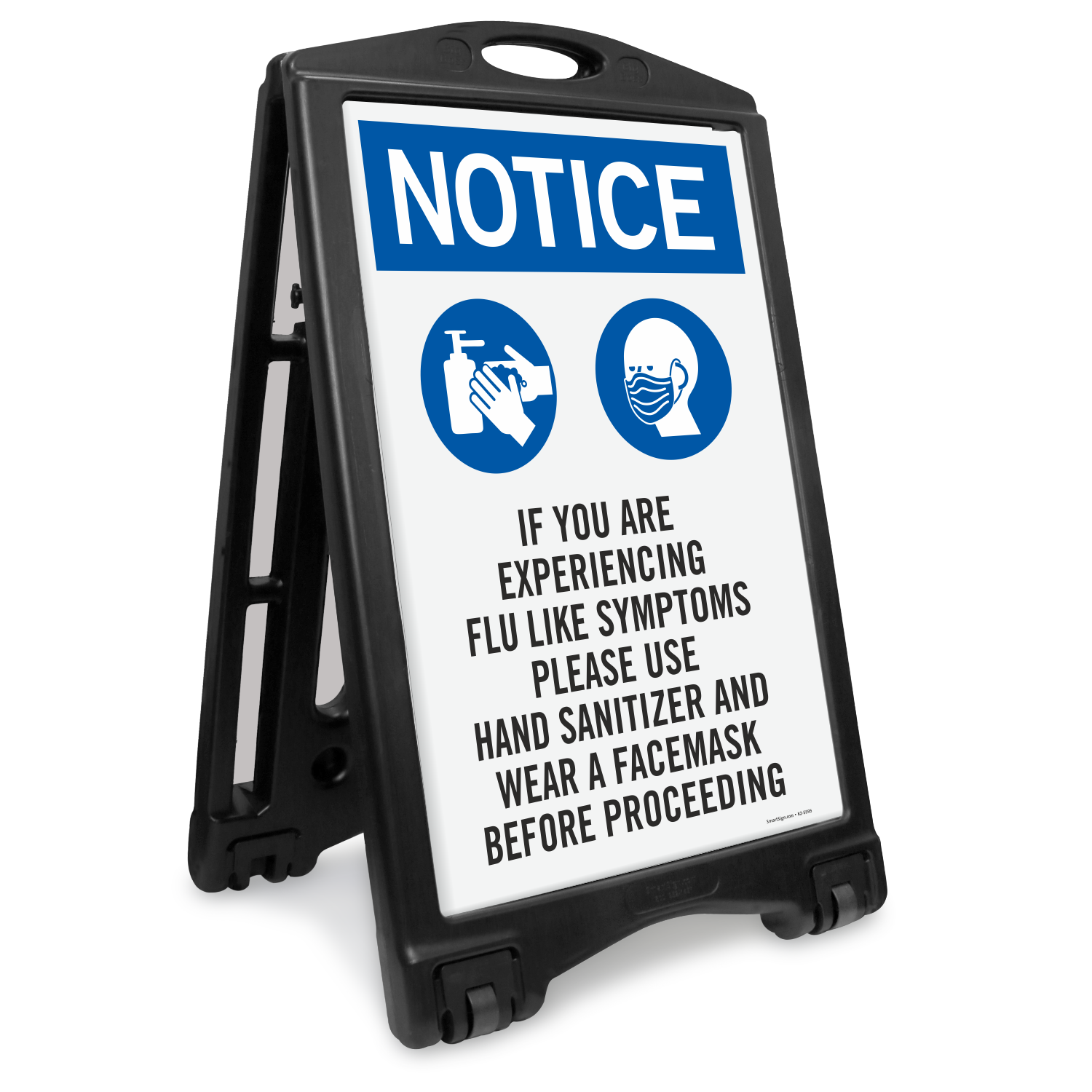 Remind people to wear face masks and use hand sanitizers with this high-visibility sign.
