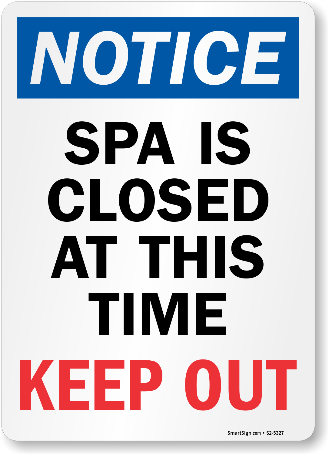 The sign serves as a safety precaution by informing people that the spa is closed and that they should not enter, especially during maintenance or cleaning, as it could be dangerous for people to be in the area.