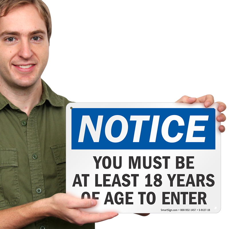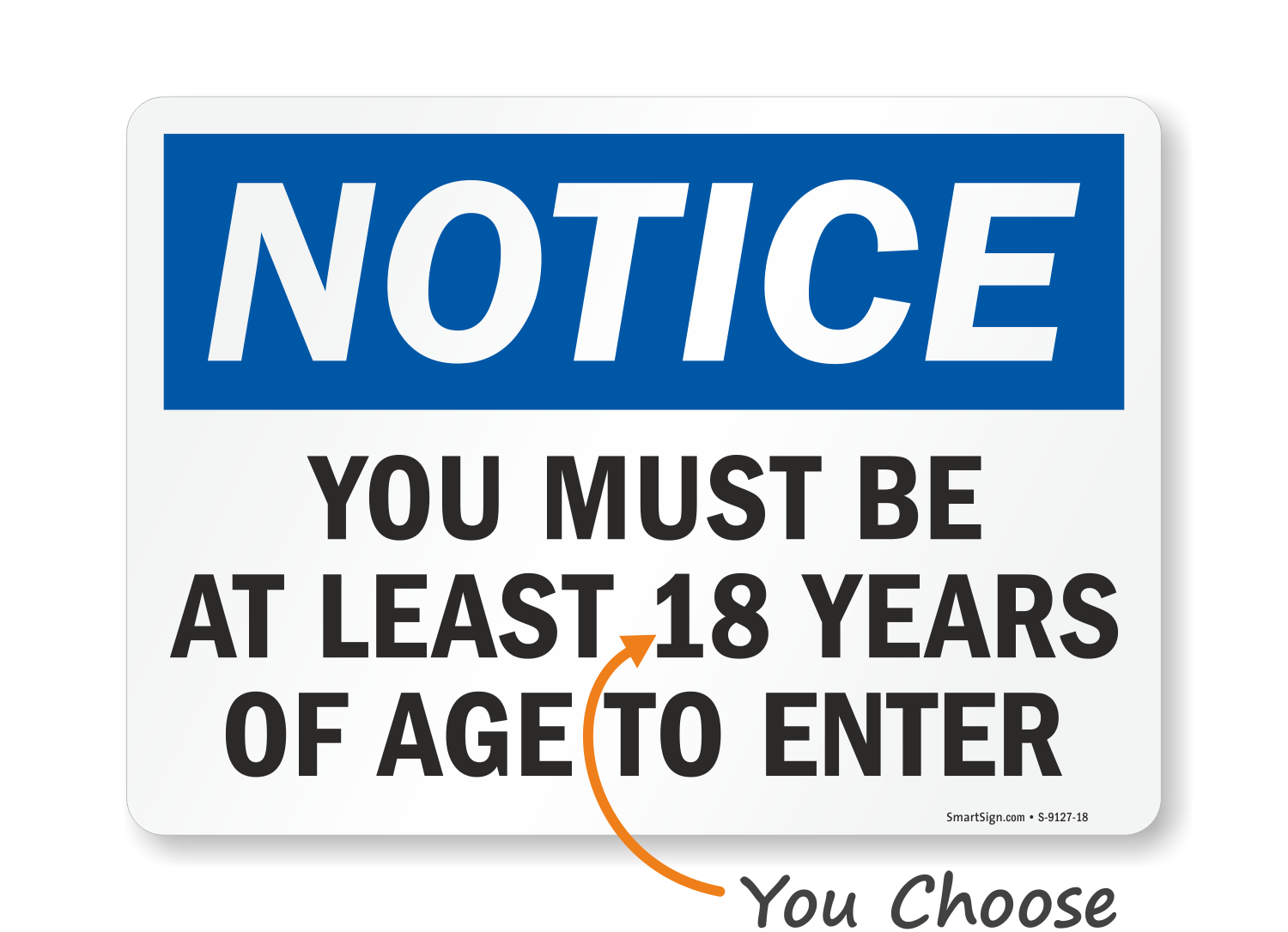 Notice Show Id Sign: You Must Be At Least 18 Years Of Age To Enter (Choose Age - 16, 18 or 21) S-9127-18
