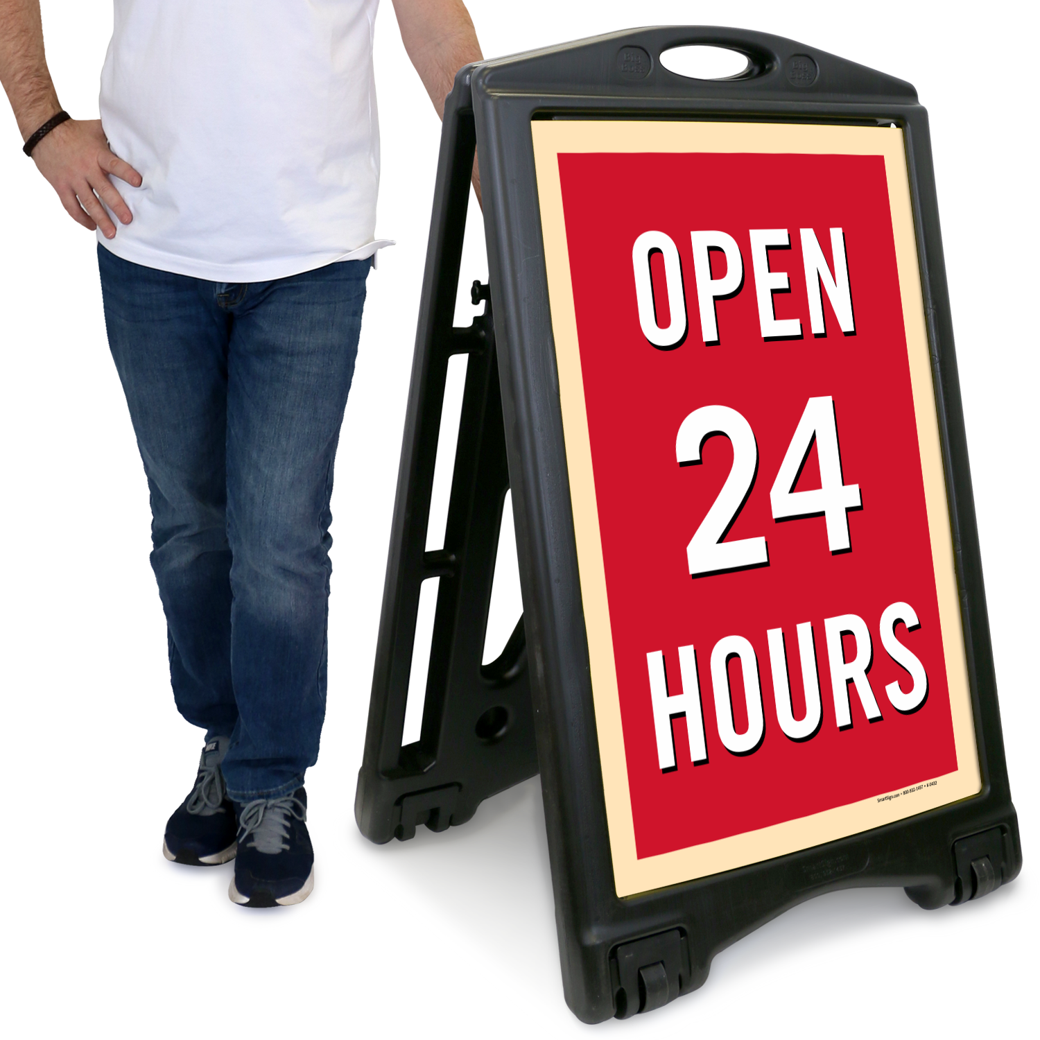 Great for shops, restaurants, cafeterias’, medical stores, and bars, this A-frame Sidewalk Sign is easy to install. This portable product comes to great use in informing that the place is open round the clock.