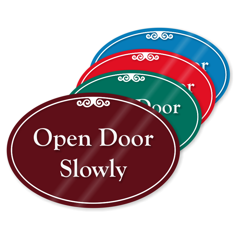 Oval ShowCaseâ„¢ Sign: Open Door Slowly SE-7017