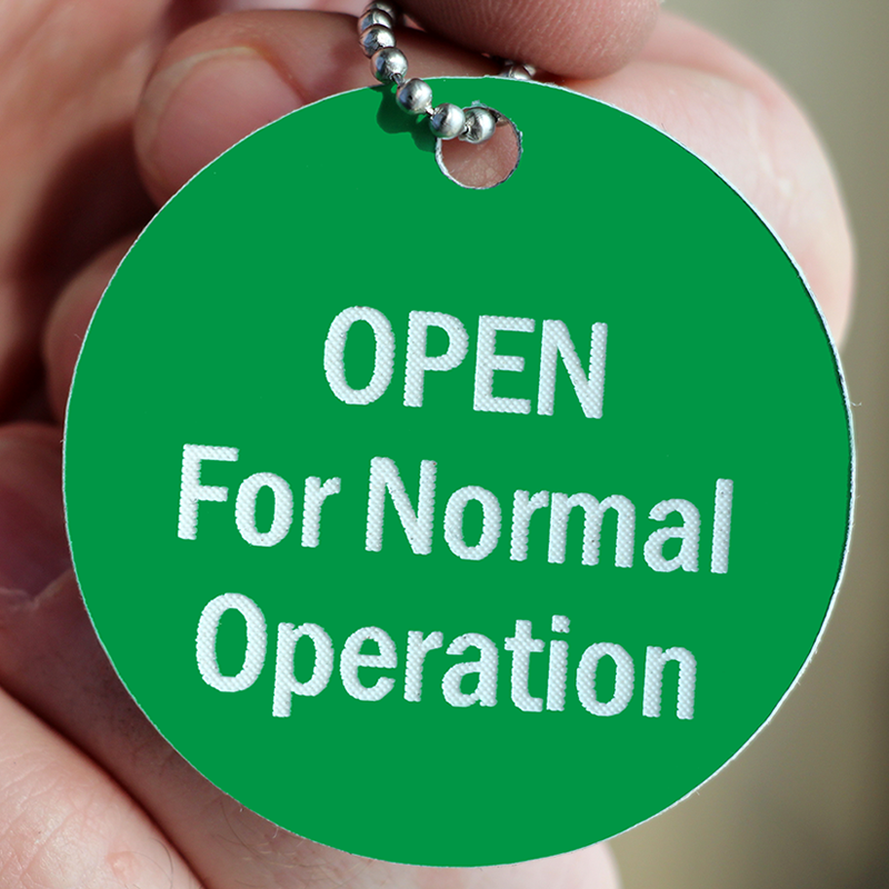 Stock Engraved Valve Tag: Open For Normal Operation Tag SE-5535