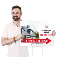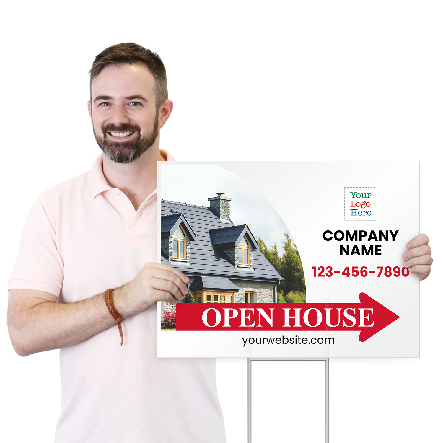 Custom Real Estate Yard Sign: Open House - Add Your Company Name, Number & Logo (With Arrow) K3-3051-H