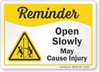 Safety Reminder Sign: Open Slowly, May Cause Injury