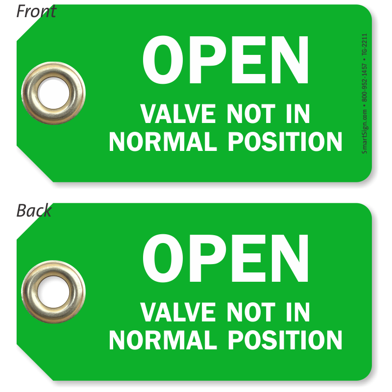 At-valve instructions are very helpful and ensure safety. This horizontally-aligned green tag relays an important instruction on both the sides.