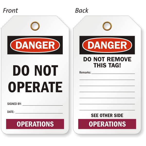 2-Sided OSHA Danger Safety Tag: Do Not Operate Tag - Operations TG-0674