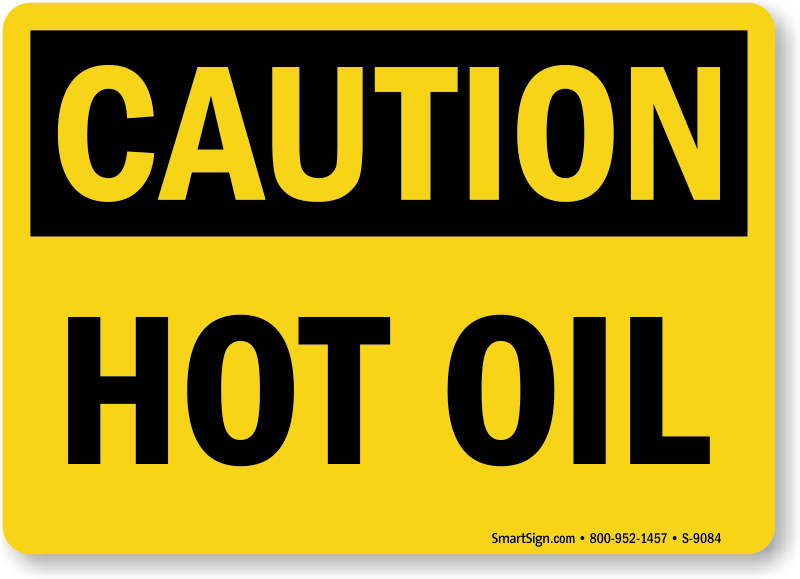 Hot oil is extremely dangerous; post this sign to alert nearby individuals to use caution.