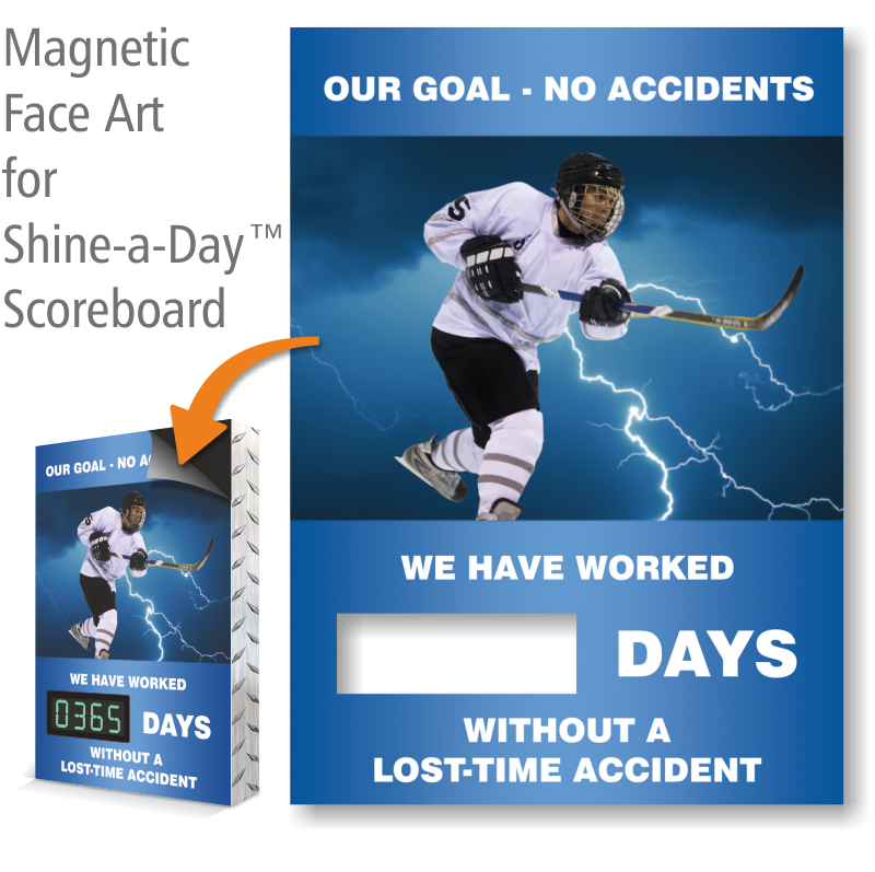 Show off your bright safety record with this "Our Goal - No Accidents" Changeable Magnetic Shine-a-Day™ Face. Face can be rolled for easy portability and storage.