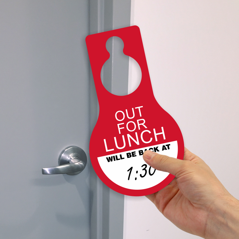 Dry Erase Pear Shaped Door Hang Tag: Out For Lunch Will Be Back (Write-On Time) TG-1492