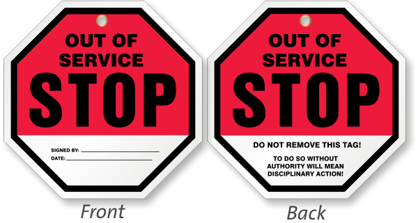 2-Sided Octo-Tagsâ„¢: Out Of Service Stop Tag TG-0469 Learn More...