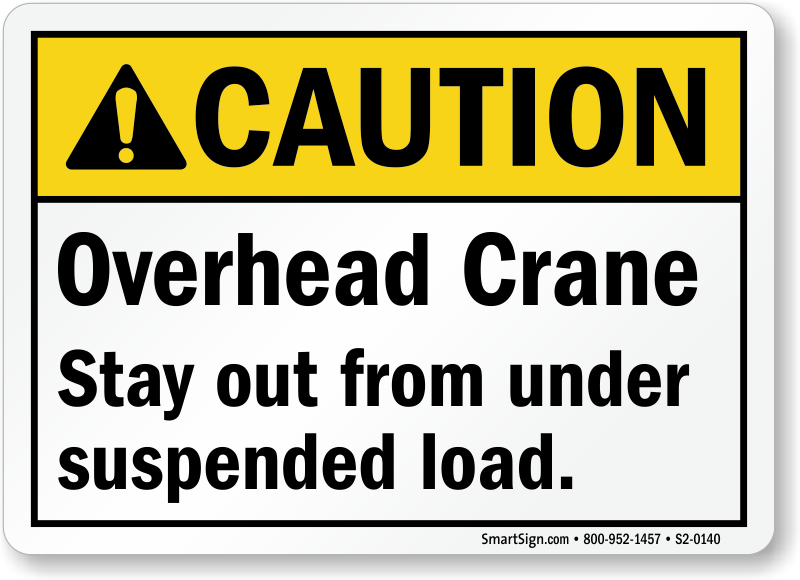 Overhead crane operation is dangerous. This ANSI Caution Sign goes a long way in ensuring safety of workers and visitors on site.