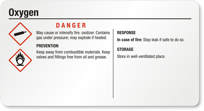 Alert employees to potential Oxygen hazards by clearly identifying cylinders with this highly visible Oxygen GHS Chemical Label.