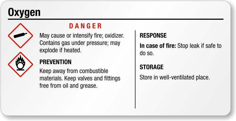 Alarm your employees against hazardous materials like Oxygen cylinders. Oxygen cylinders contain gas under pressure, which may explode if heated. Apply this tiny GHS Oxygen Label on cylinders and ensure they are handled with safety.