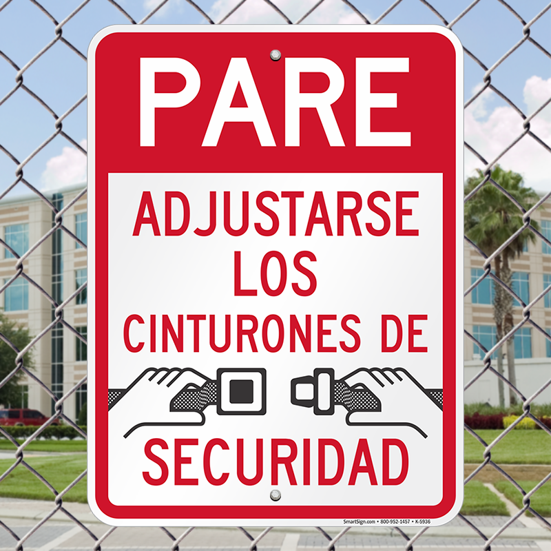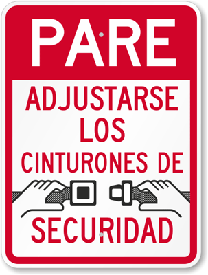 Warning Sign: Pare - Adjustarse Los Cinturones De Securidad (with Graphic) K-5936 Learn More...