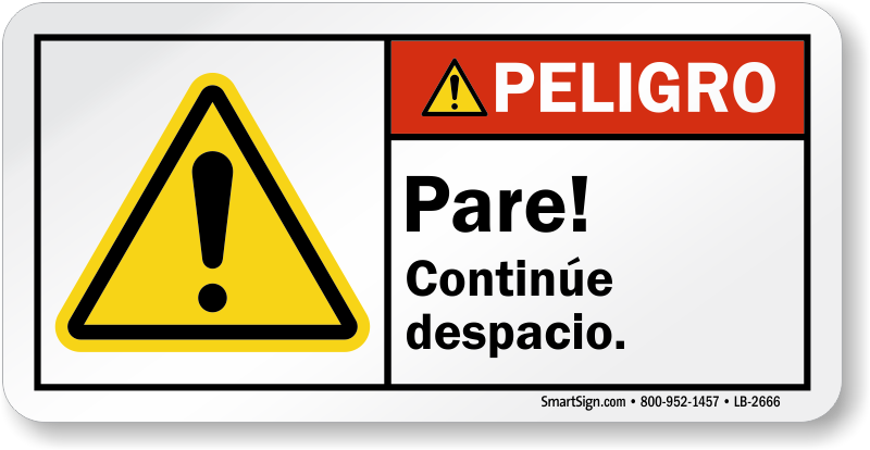 Spanish ANSI Peligro Label: Pare Continue Despacio LB-2666 Learn More...