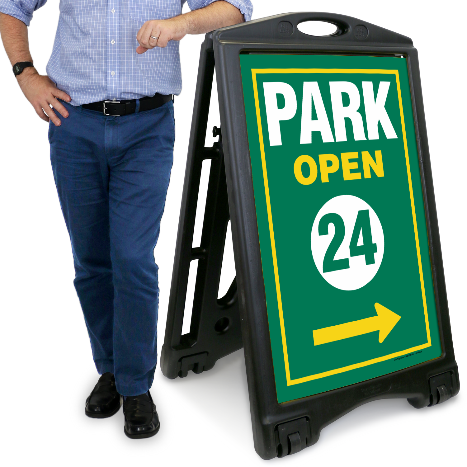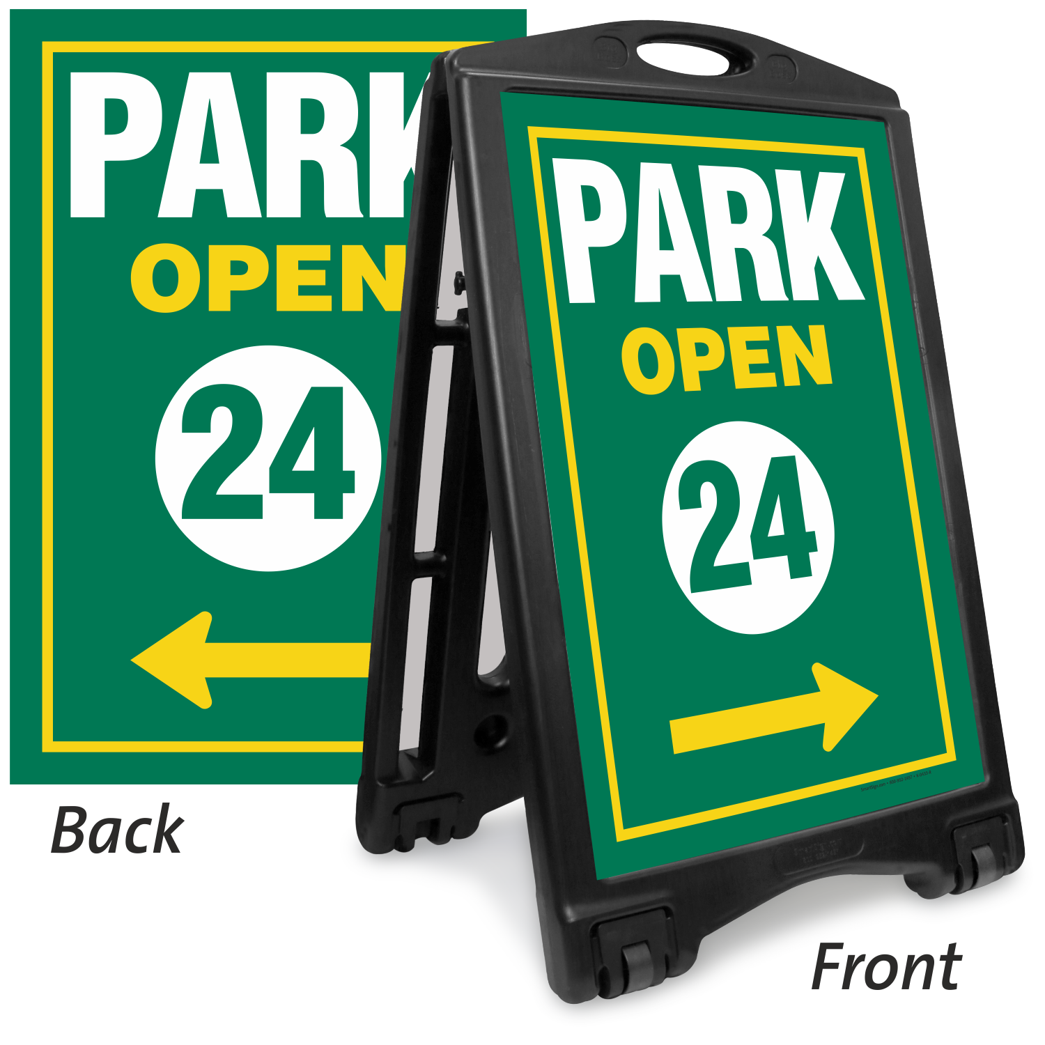 Install this Portable A-Frame Sidewalk Sign Kit and inform everyone that the park is open for 24 hours. This product with message on both the sides has applications in community or private parks.