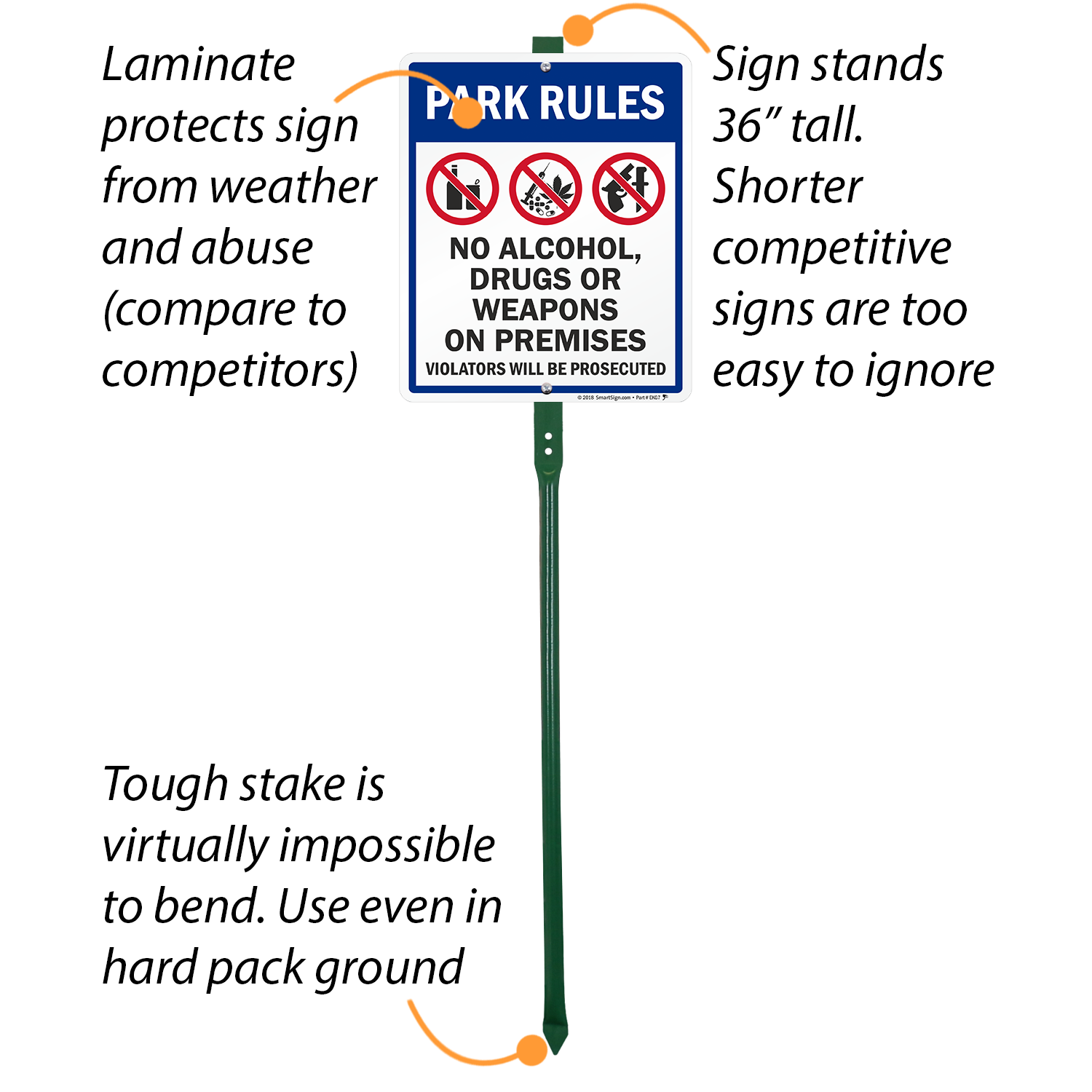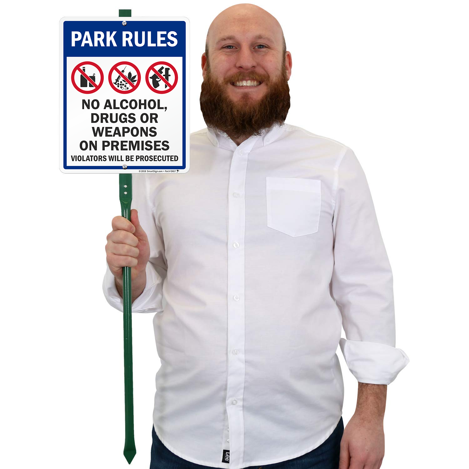 LawnBoss® Sign & Stake Kit: Park Rules - No Alcohol, Drugs Or Weapons On Premises. Violators Will Be Prosecuted K2-5531