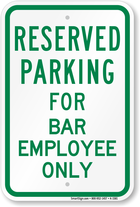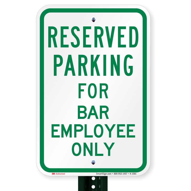 Parking Space Reserved Sign: Parking Reserved For Bar Employee Only K-1581 Learn More...