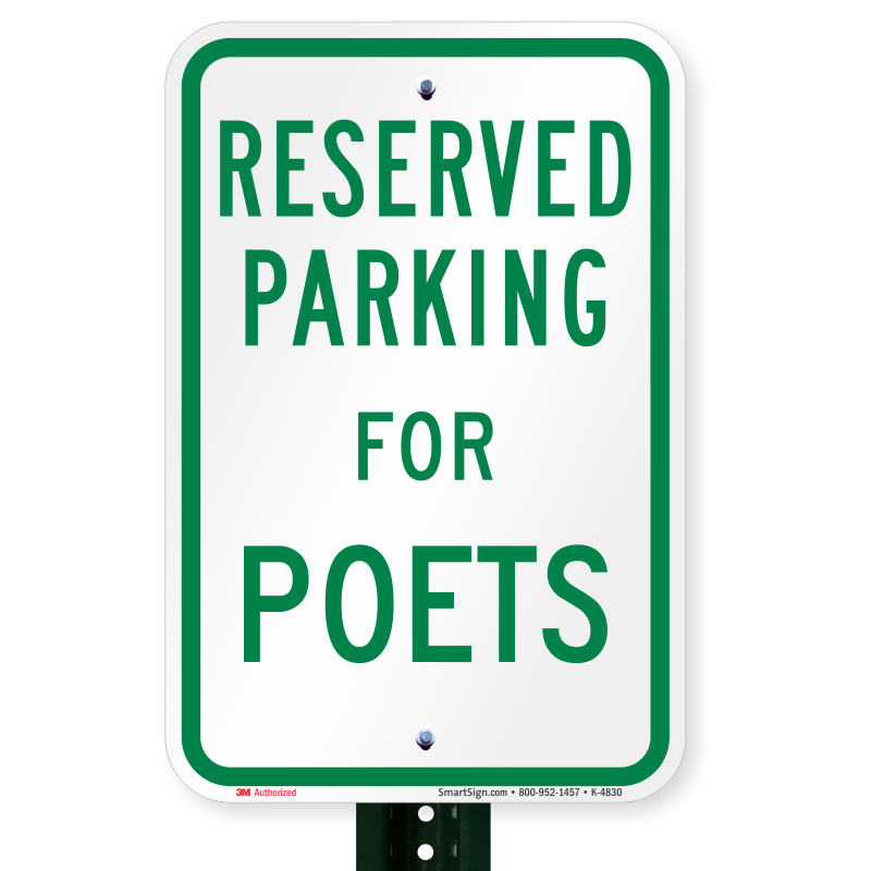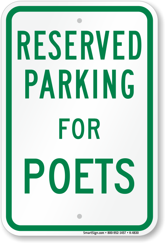Novelty Parking Space Reserved Sign: Parking Reserved For Poets K-4830 Learn More...