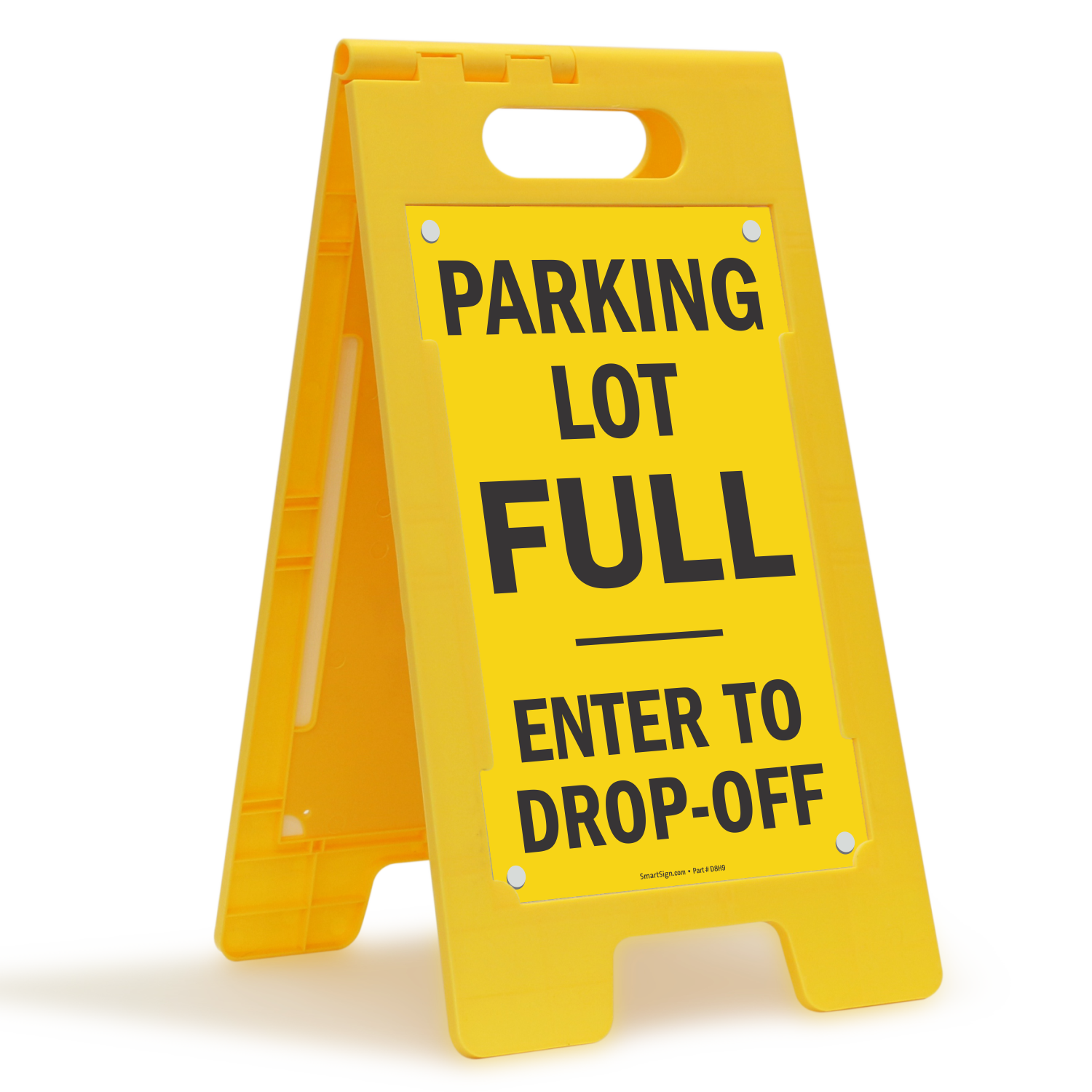 Get a 'Parking Lot Full, Enter To Drop-Off' floor sign that cannot be missed by motorists! This free-standing sign is great for hotels, large events, malls, etc.