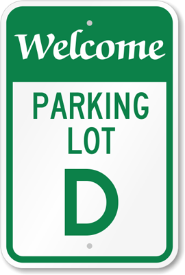 Parking Lot Sign: Welcome Parking Lot D K-5721 Learn More...