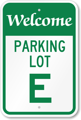 Parking Lot Area Sign: Welcome Parking Lot E K-5722 Learn More...