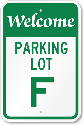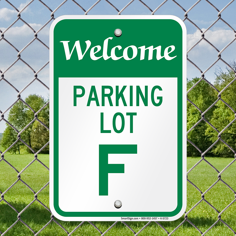 Parking Lot Area Sign: Welcome Parking Lot F K-5723 Learn More...