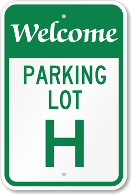 Parking Lot Area Sign: Welcome Parking Lot H K-5725 Learn More...