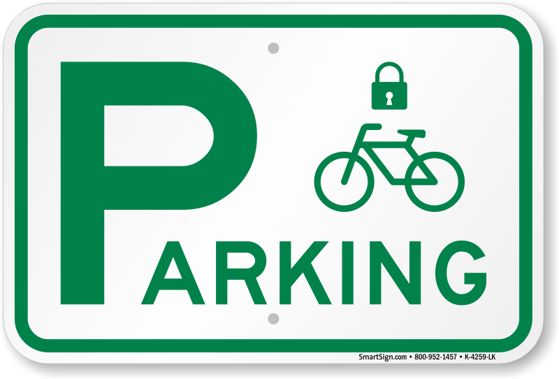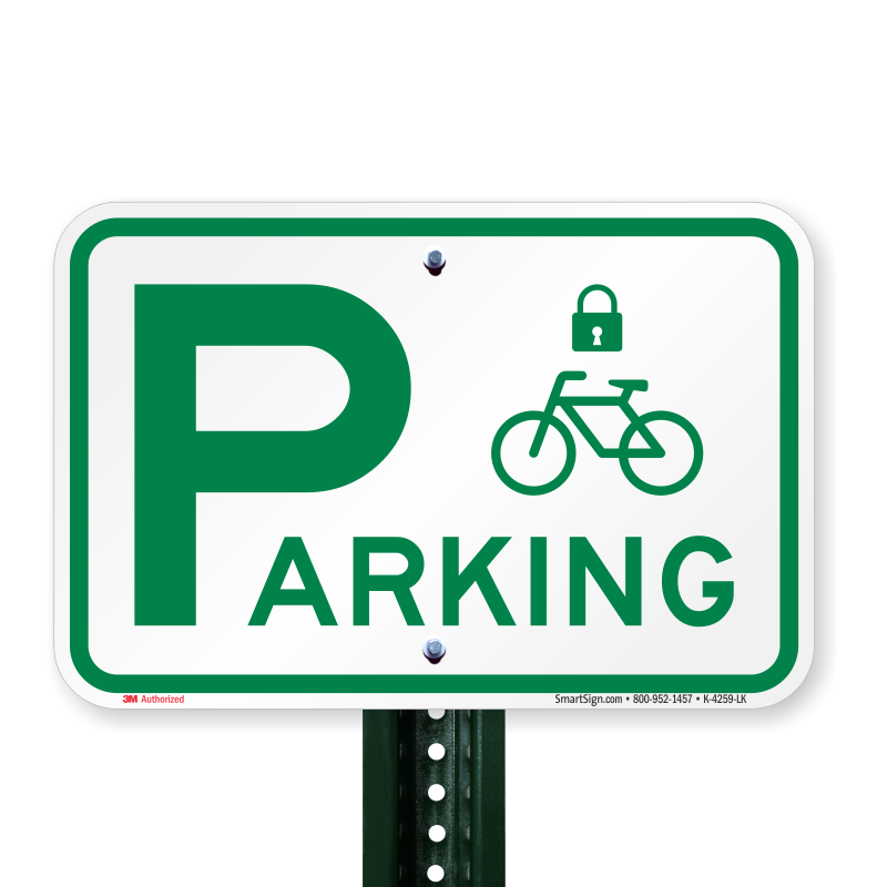 Mark bicycle parking area with this bike sign. With a bike and lock symbol, this sign effectively communicates bike owners to lock their bikes to prevent it from being stolen.